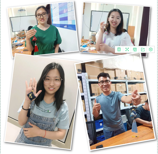 在制作过程中,大家相互交流,相互学习,很多员工都是第一次参加手工体验活动,开始的时候动作比较缓慢,但是慢慢地,大家找到了技巧,两两一组或几人一组互相配合,共同体会民俗文化带来的魅力,一起探讨着端午节的习俗,传递着美好的祝福。
