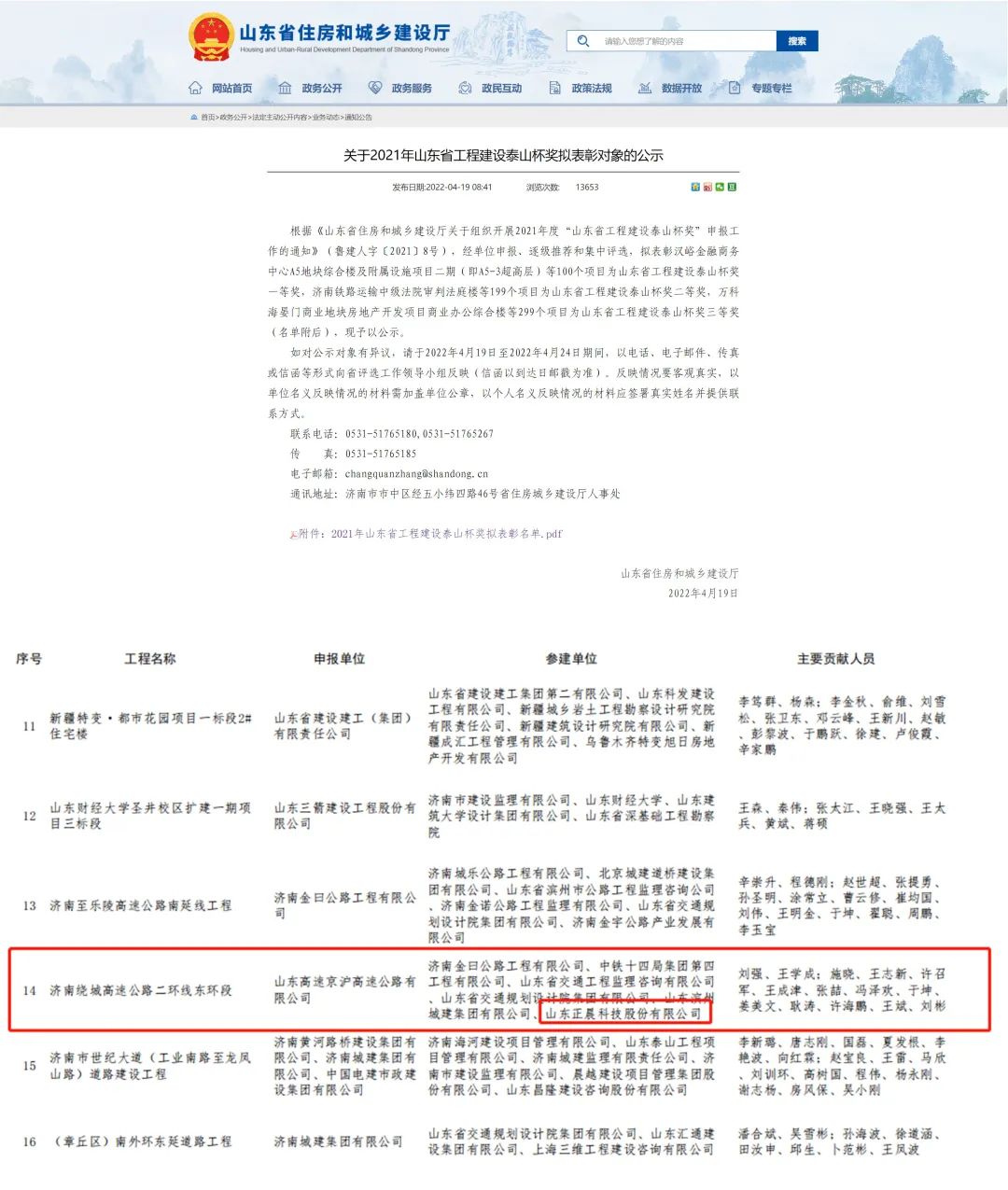 近日,多宝体育线上登陆官方网站BANDAO参建的“济南绕城高速公路二环线东环段项目”荣获2021年度山东省工程建设泰山杯奖!